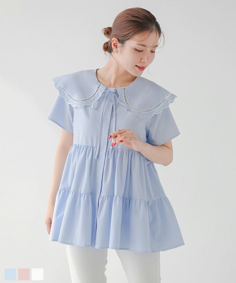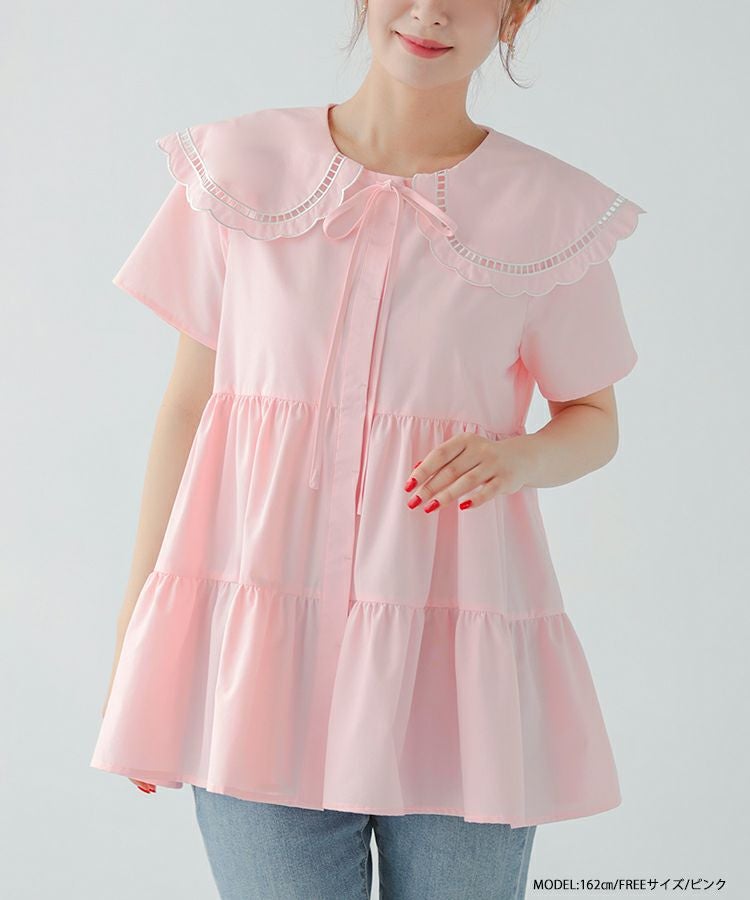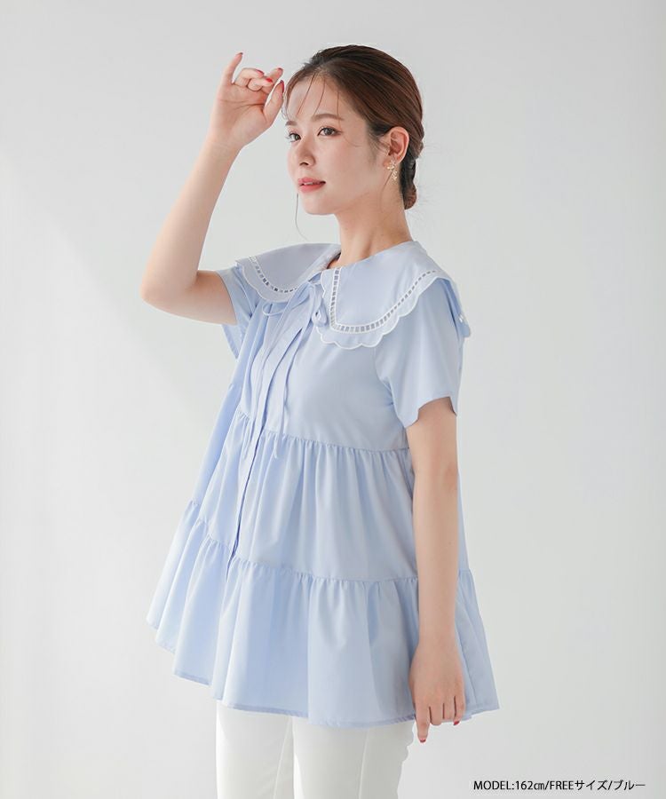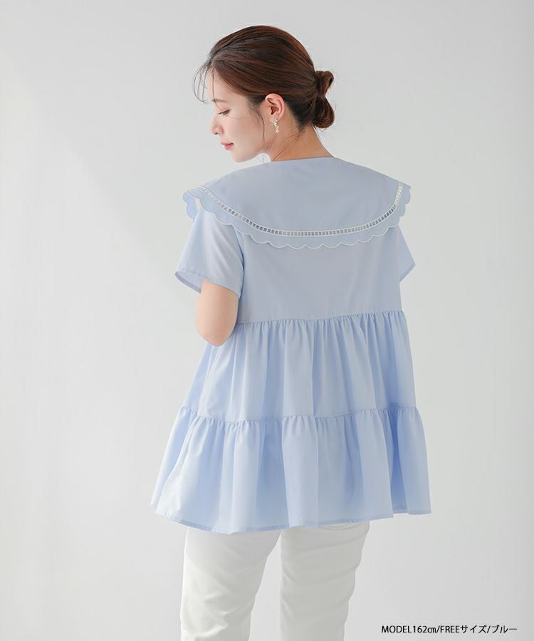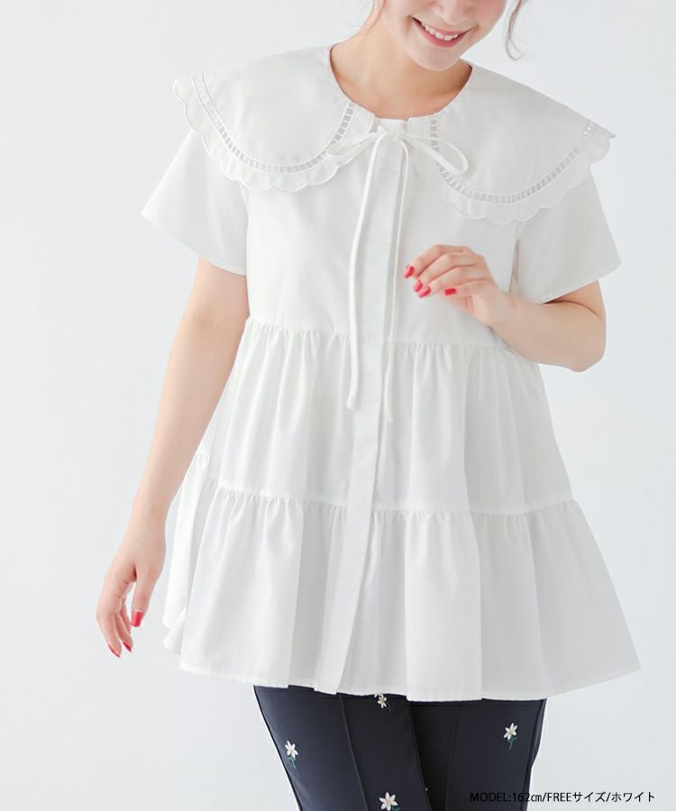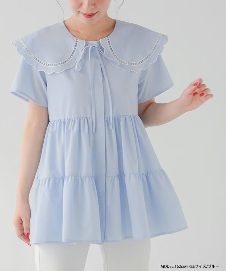 ハシゴスカラップ襟ティアードブラウス【宅配便】