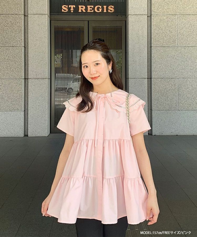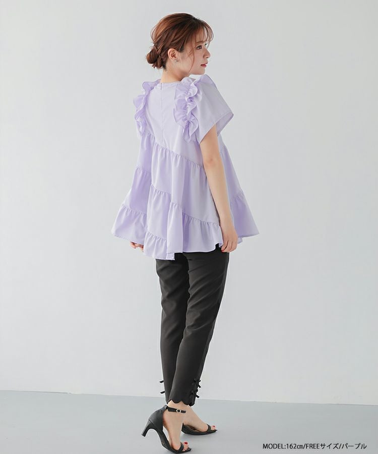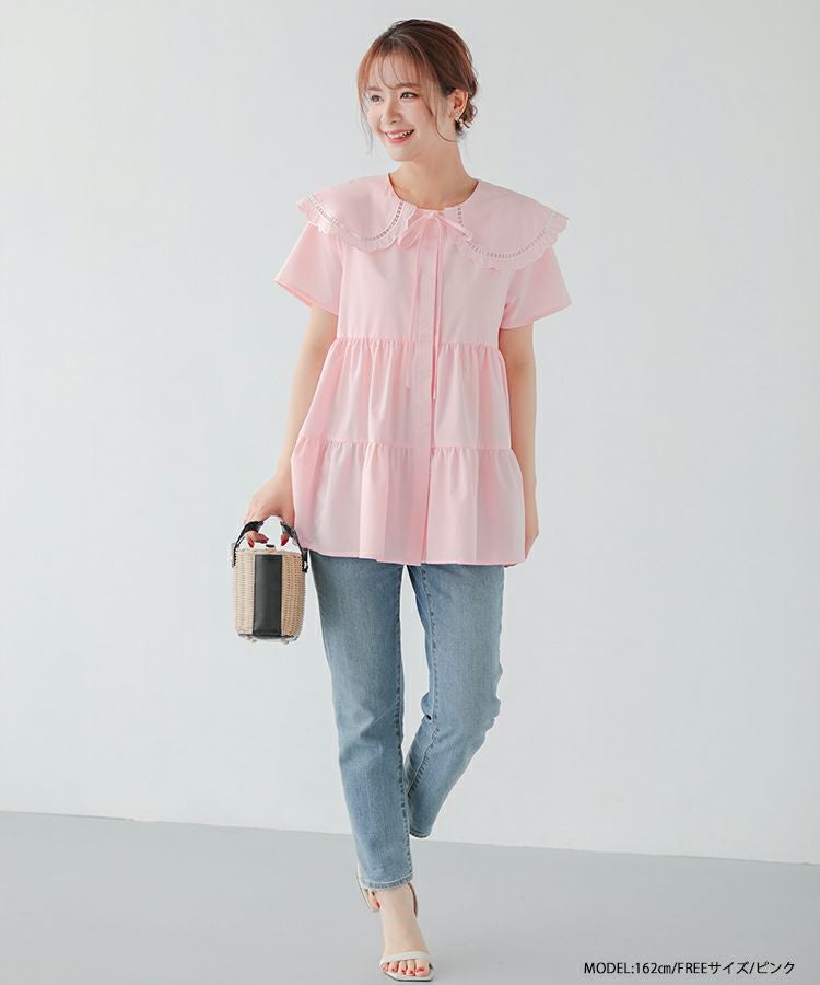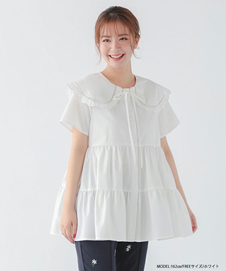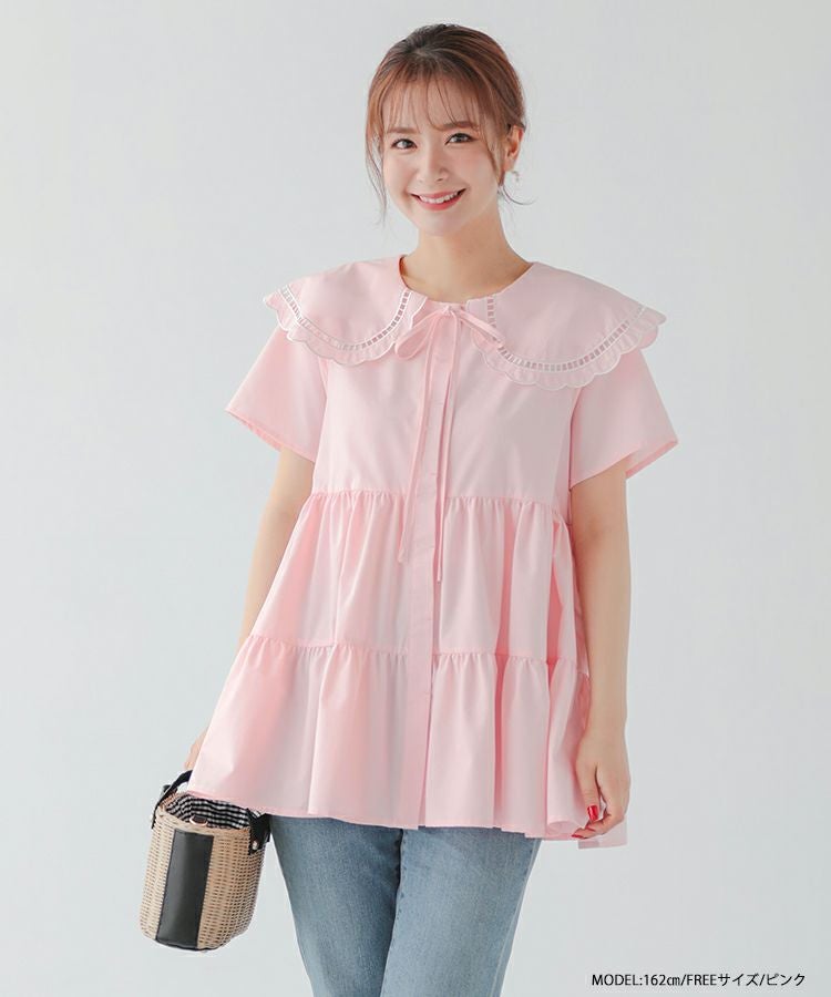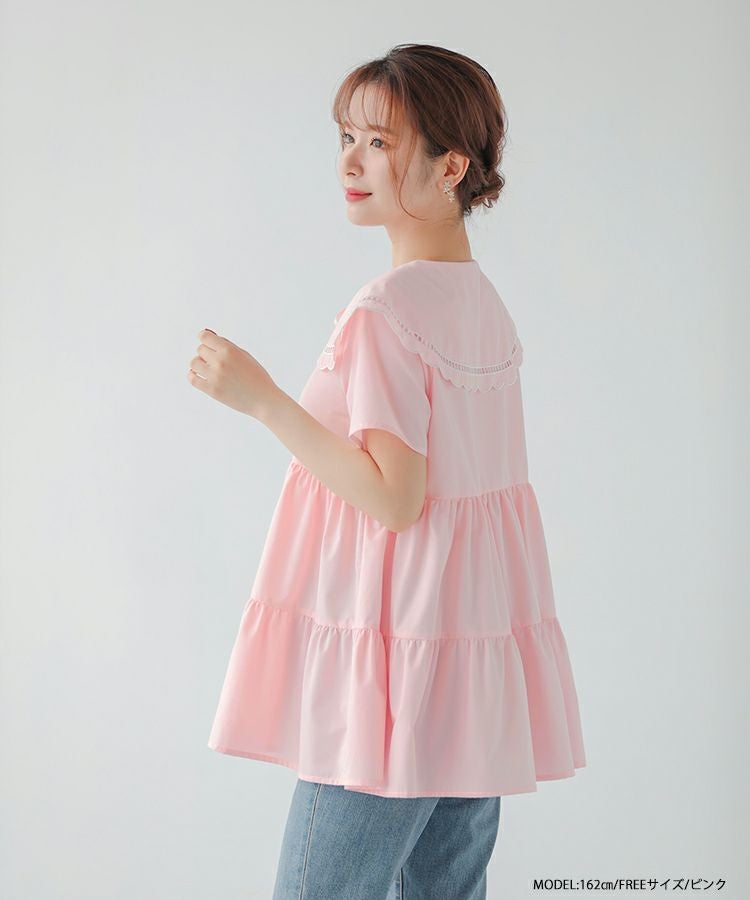 ハシゴスカラップ襟ティアードブラウス【宅配便】